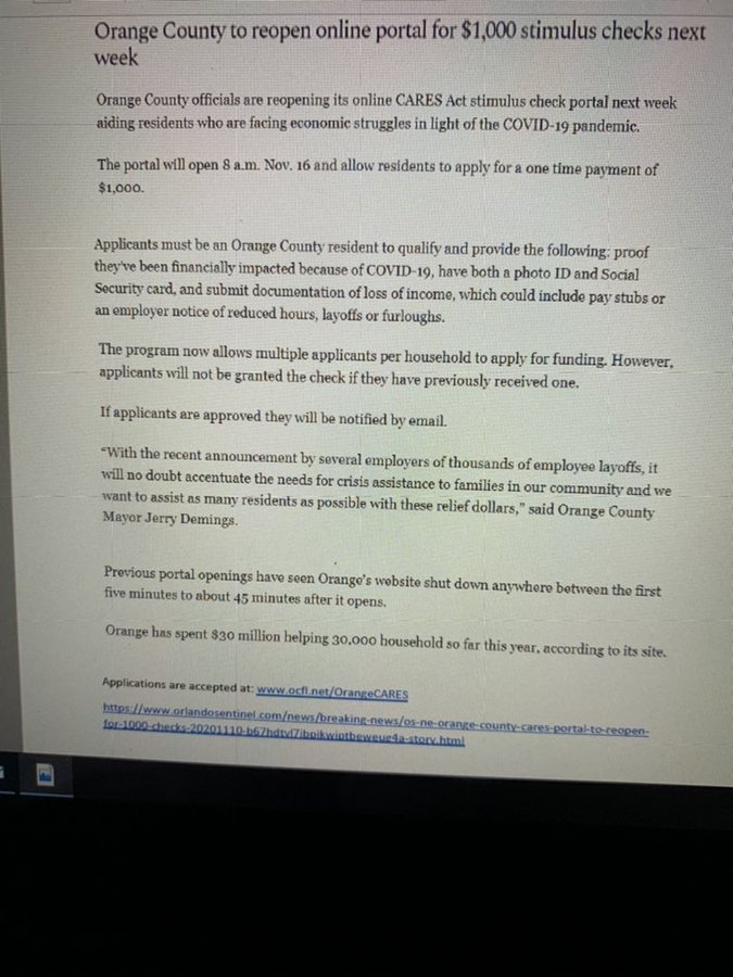 Application Portal For Orange County 1 000 Stimulus Checks Reopened Shut Down Again Orlando Sentinel